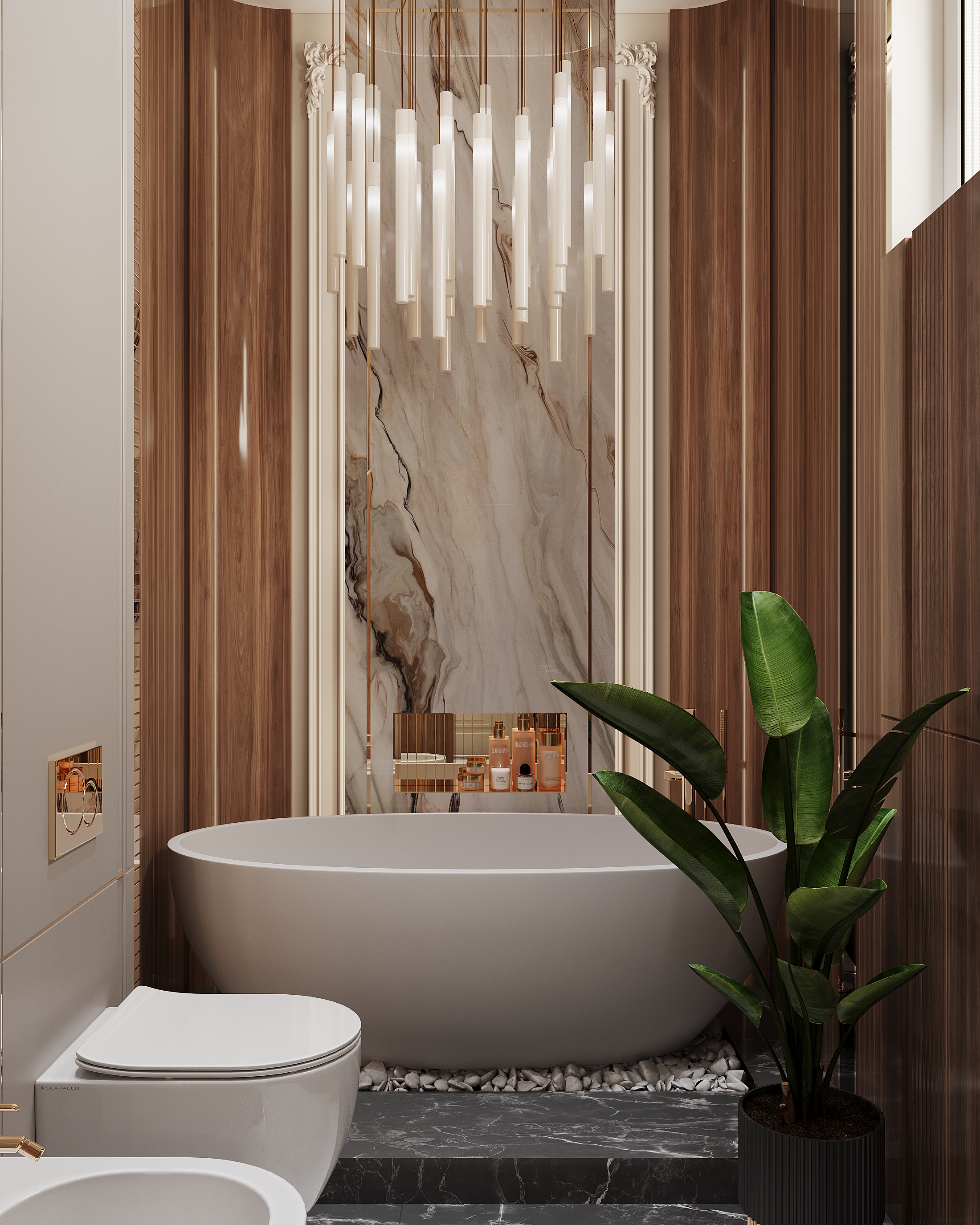 ОСОБЕННОСТИ Санузла Культурная идентичность: Проект ориентирован на отражение традиций и культуры выбранной страны (например, России) через элементы народного творчества, старинную мебель и аксессуары, создавая атмосферу уюта и гостеприимства. Использование натуральных материалов: В отделке использованы натуральные материалы, такие как дерево, камень и текстиль, что помогает создать гармоничное и экологичное пространство, подчеркивающее близость к природе.